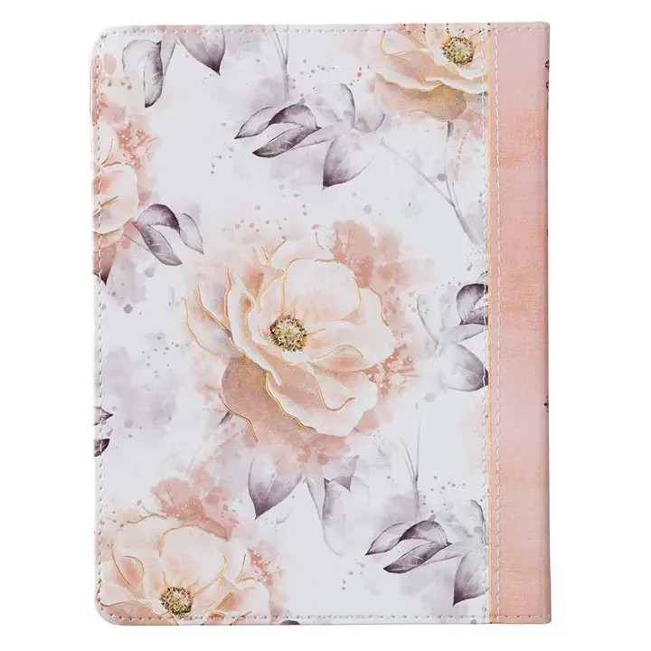 The faux leather edition of the Walking in Grace Devotional holds 366 grace-filled devotions designed to offer courage, hope, and wisdom to women. This daily devotional is a haven of calm contemplation amid the busyness of life. Pink floral cover design, Peachy pink spine, Faux leather cover, Gold foil on cover, 366 devotional readings, 392 gilt-edged pages, Full-color interior, Ribbon marker, Size: 7.8" x 6" x 0.9"