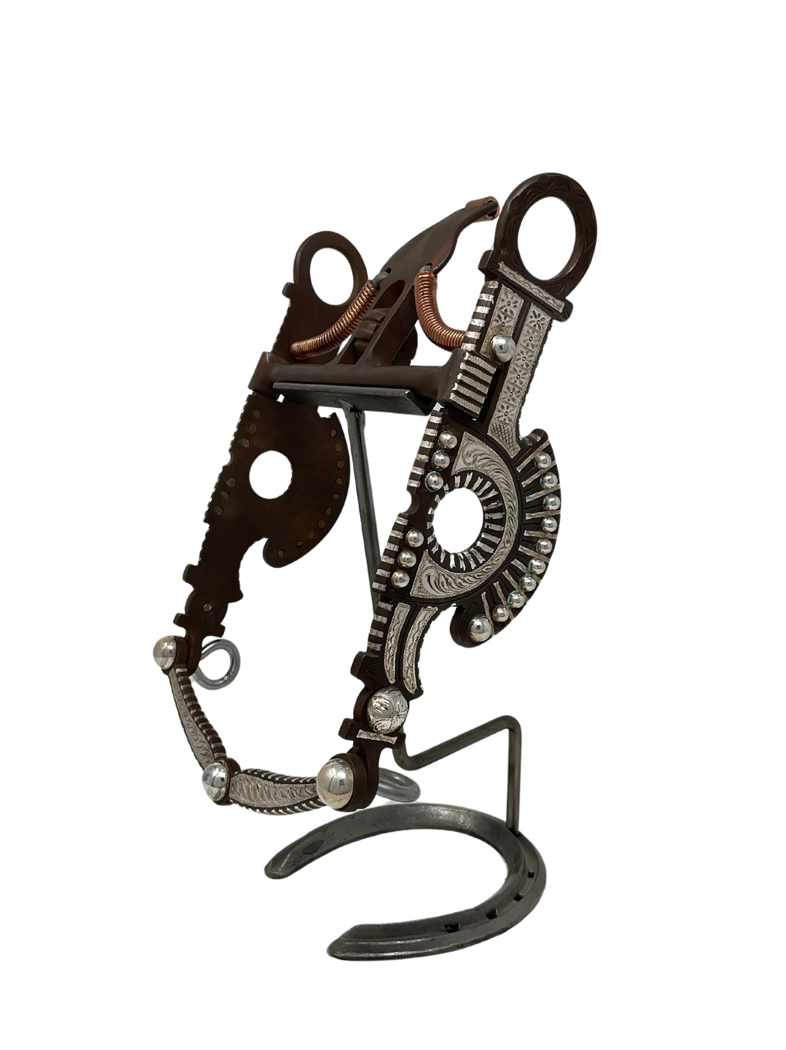 Rust finish with inlaid sterling silver, slobber bar, and flared. Our standard mouthpiece width is 5 1/8″. For custom bit orders please click on B/B Silver Bits-Custom orders
