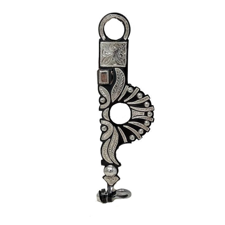 All B/B bits may be ordered in black, blue, bronze or rust finished steel with inlaid sterling silver or stainless steel with sterling silver overlay. Our standard mouthpiece width is 5 1/8″ or may be ordered in a different width to suit your needs. Choose the mouthpiece you like to go with your favorite cheek style. For custom bit orders please allow 8-10 weeks. Colors are inlaid and Stainless is overlaid.
