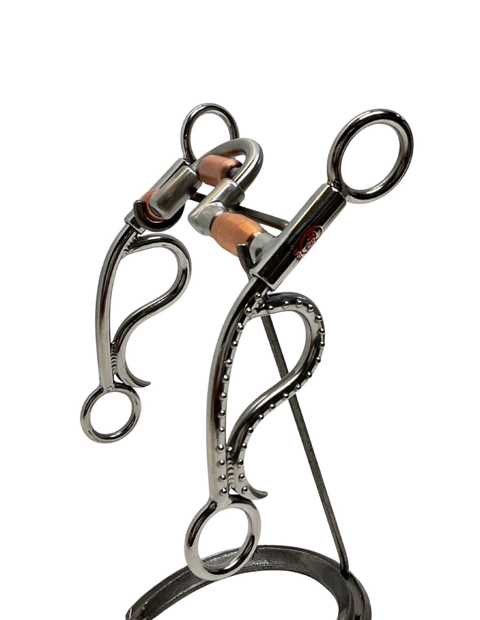 This beautifully crafted bit features a Bighorn© shank in a stainless finish with dots. The mouthpiece is our Roller Derby©. This shank measures 7-3/4".
