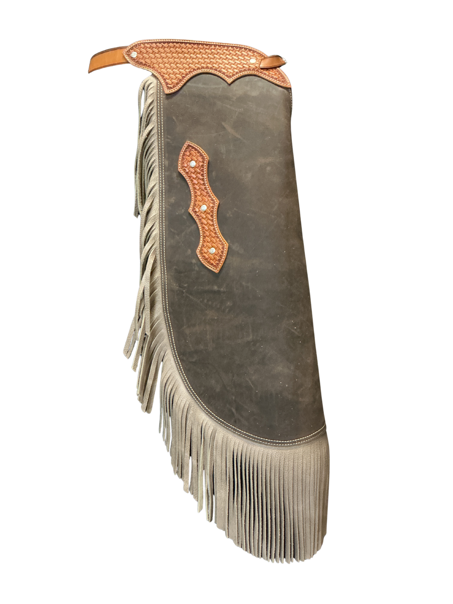 Superior quality, custom made B/B chinks. Each pair is custom made here in Montana with premier leather. High quality USA made buckles on both the front and the back of the belt. 3 straps buckle around the thigh to hold them in place.