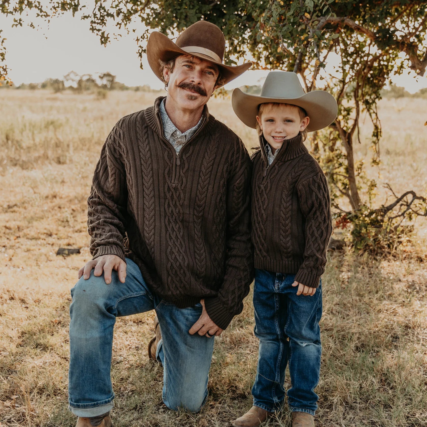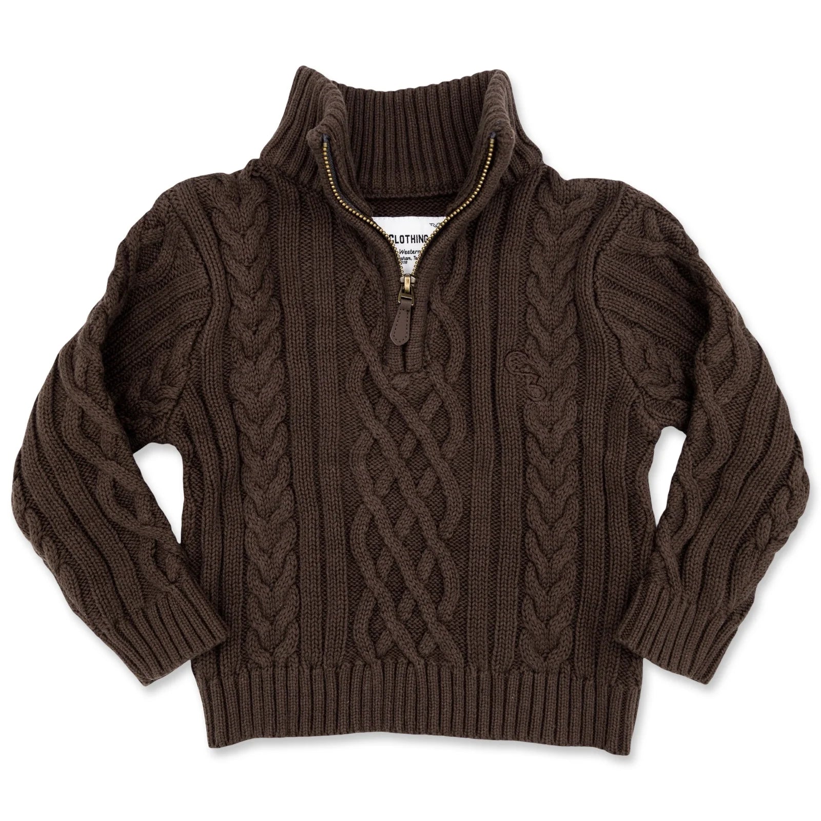 Dark Brown Quarter Zip Cable Knit Sweater (Infant-Adult)