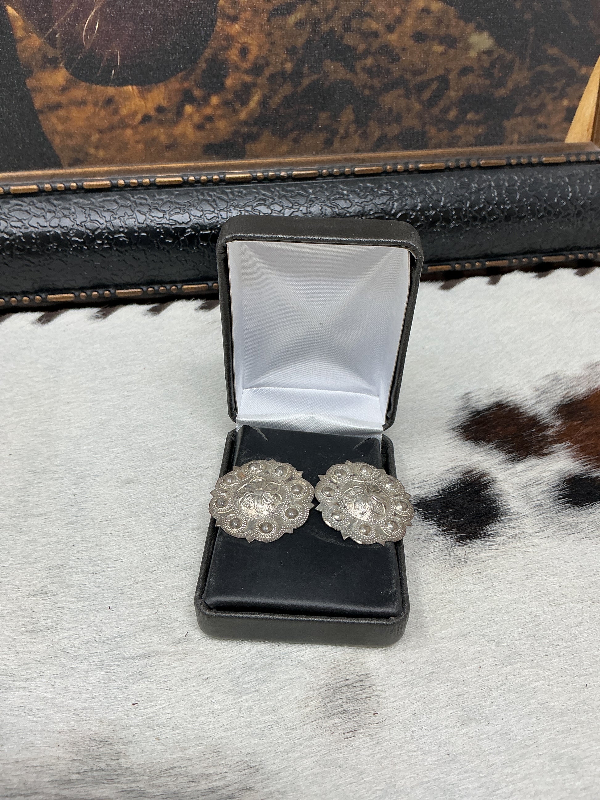 Custom sterling silver concho post earrings.