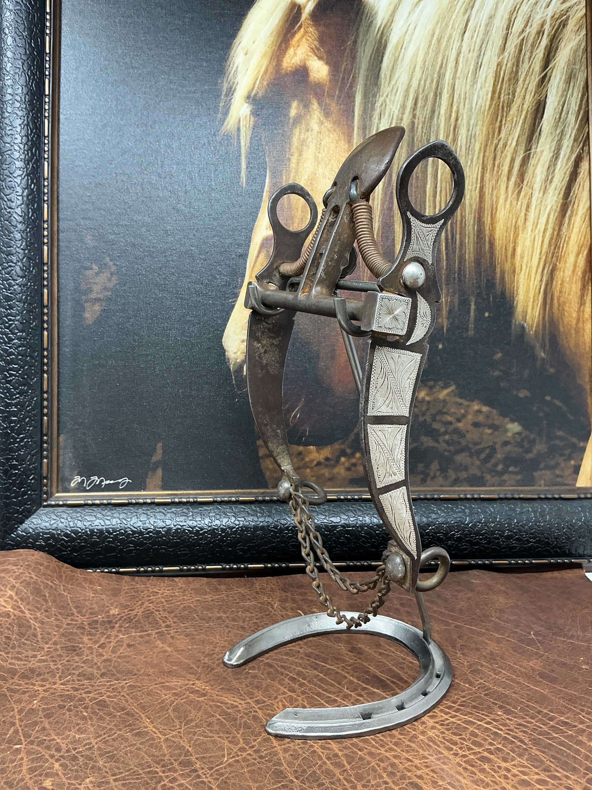 Morales cheeks with rust finish and sterling overlay with a newer replacement 5 1/8" spade mouthpiece.