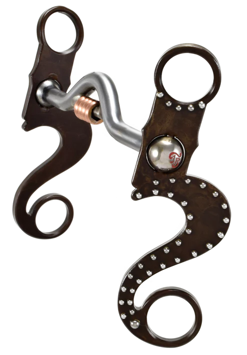 This bit showcases the iconic Eva Marie© shank, finished in rich Brown and with intricate tig welded dots. The mouthpiece features our signature Medium Low Port © with inset copper roller, offering exceptional comfort and responsiveness in a standard width of 5-1/8". With a shank length of 6-1/4", this bit seamlessly blends functionality with timeless artistry.