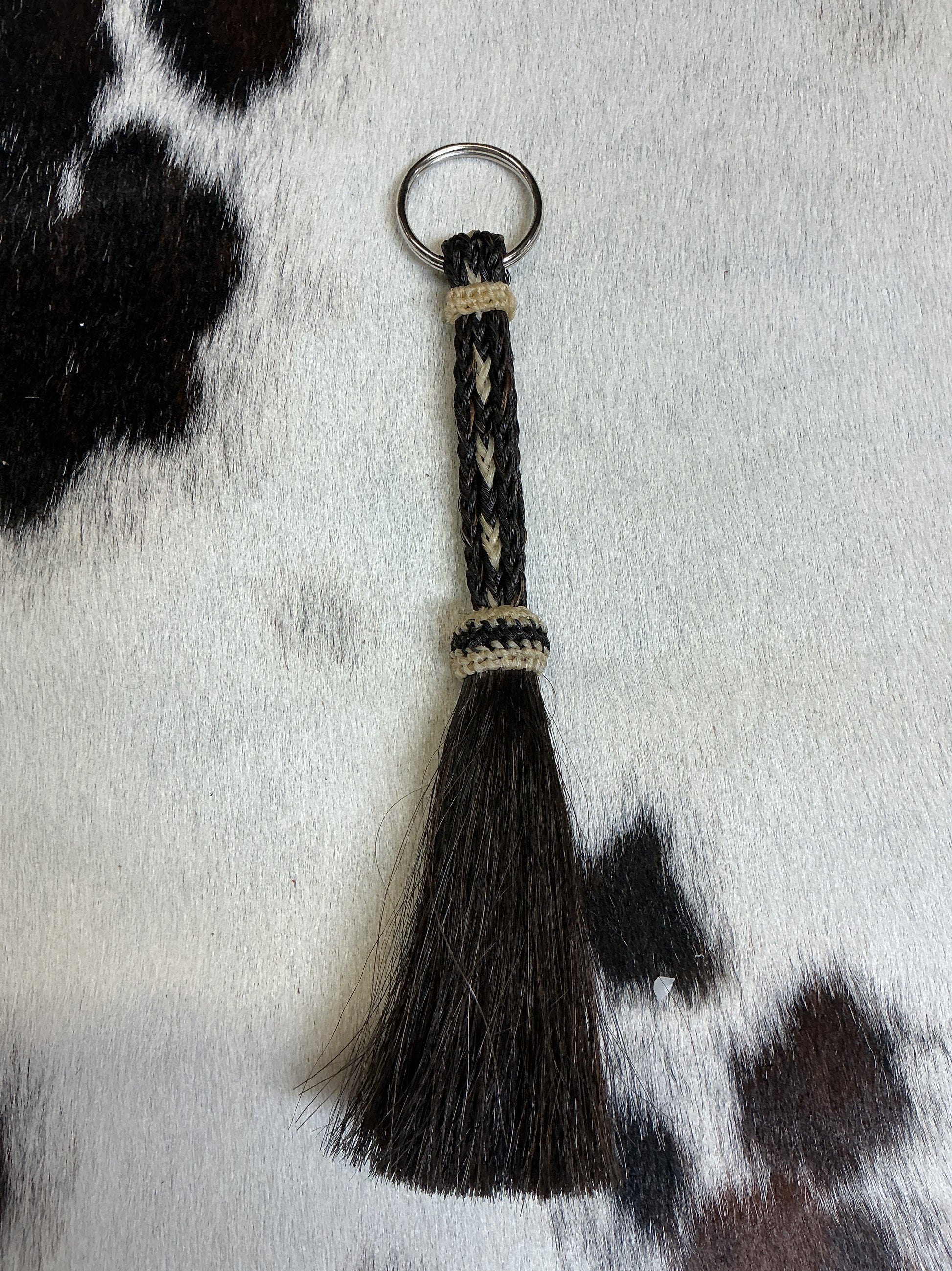 Flat braided horsehair keychain in several color options. They measure 6 1/2" long.