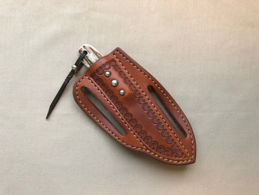 The High Country sits on your belt at a 45 degree angle and is usually carried as a cross draw. This is a great all-around knife for hunters and any outdoorsman. Whether a rancher, working cowboy, trail rider, hunter, fisherman