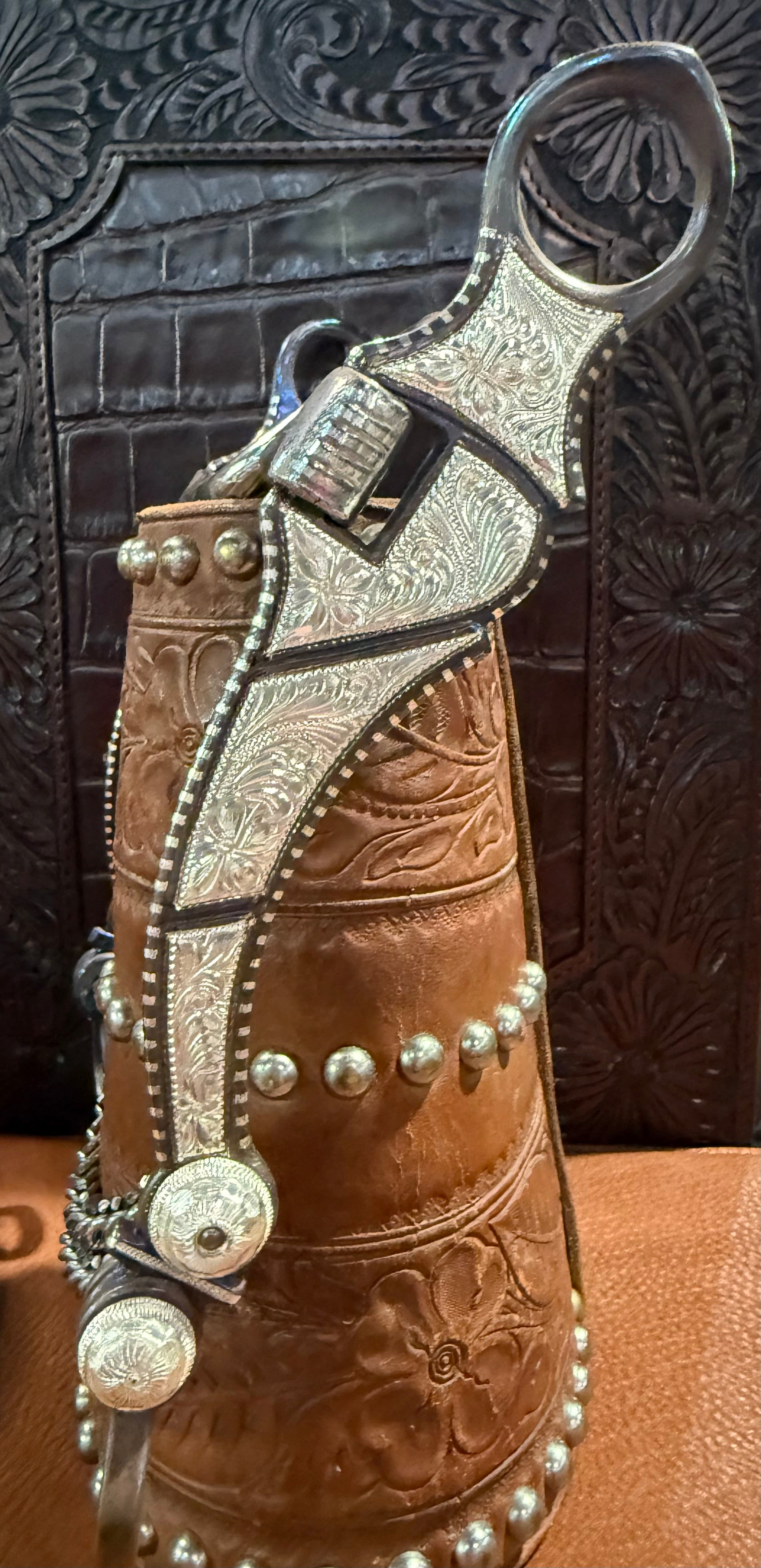 L5* Grijalva bit Nevada Cheek with inlaid sterling silver. Mouthpiece is 5 3/8" wide. 7" cheek length.