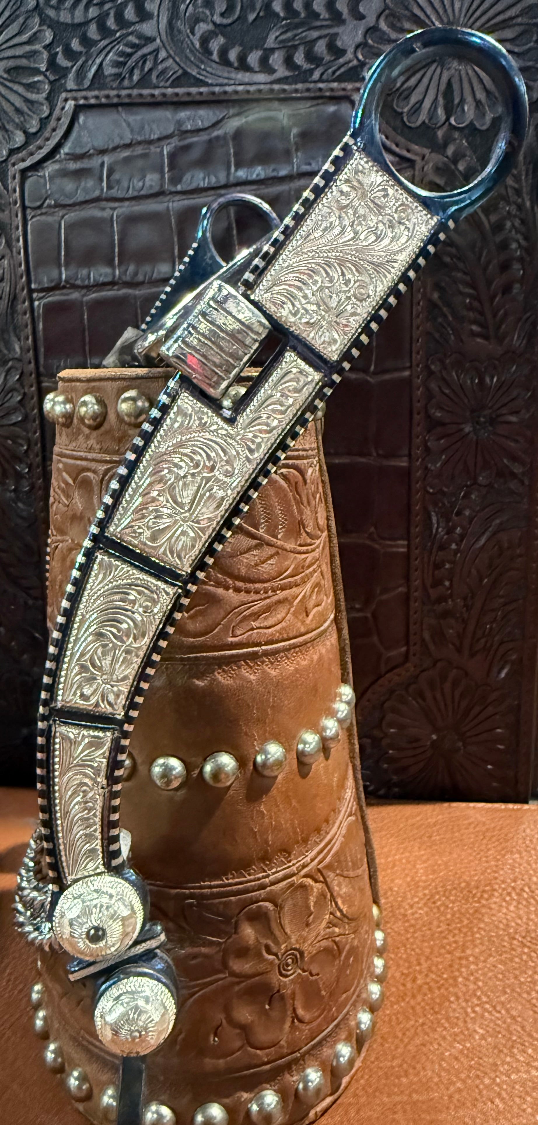 L5* Grijalva bit with inlaid sterling silver. Mouthpiece is 5 1/4" wide. 7" cheek length.