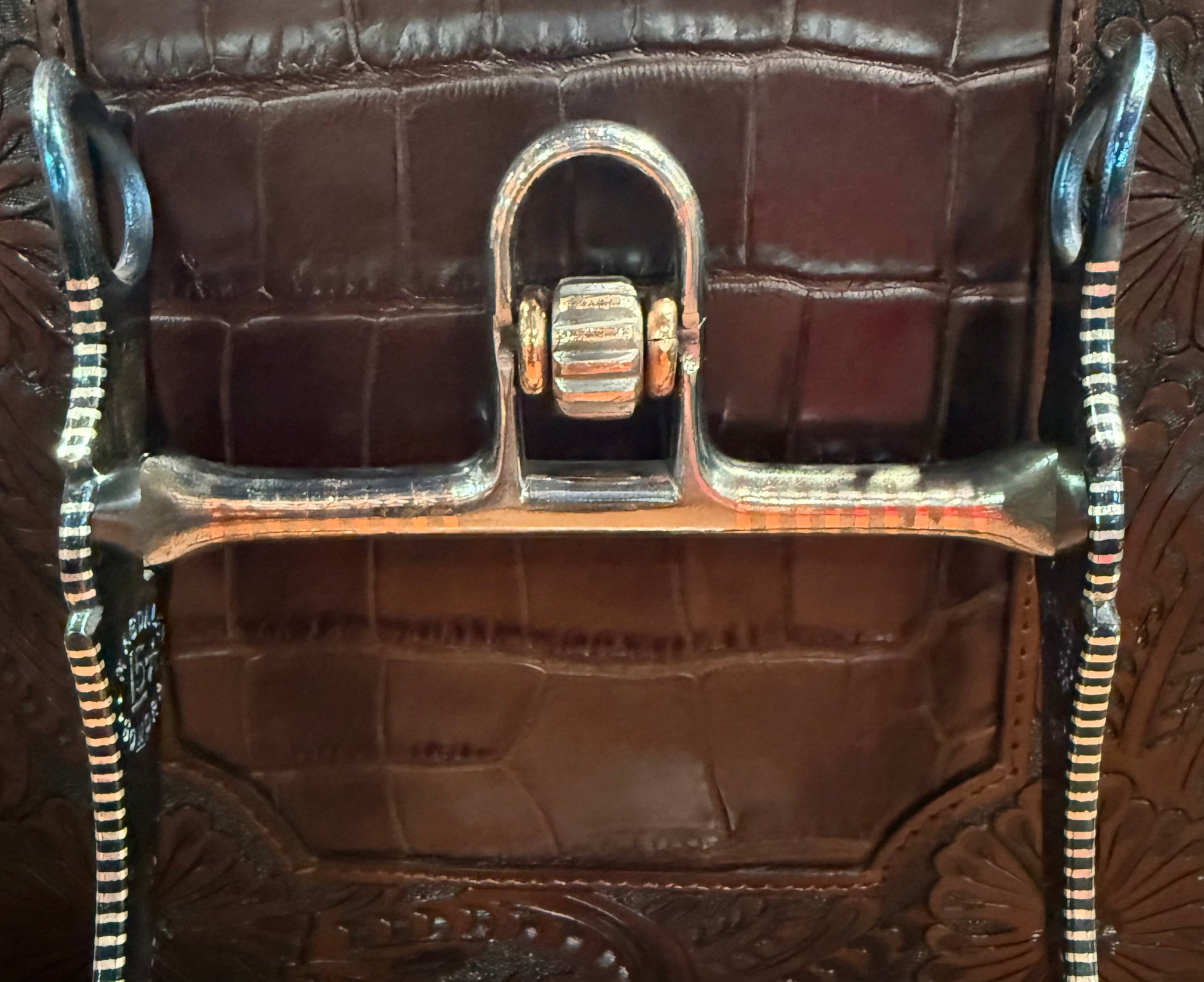 L5* Grijalva bit with inlaid sterling silver. Mouthpiece is 5 1/8" wide. 7" cheek length.