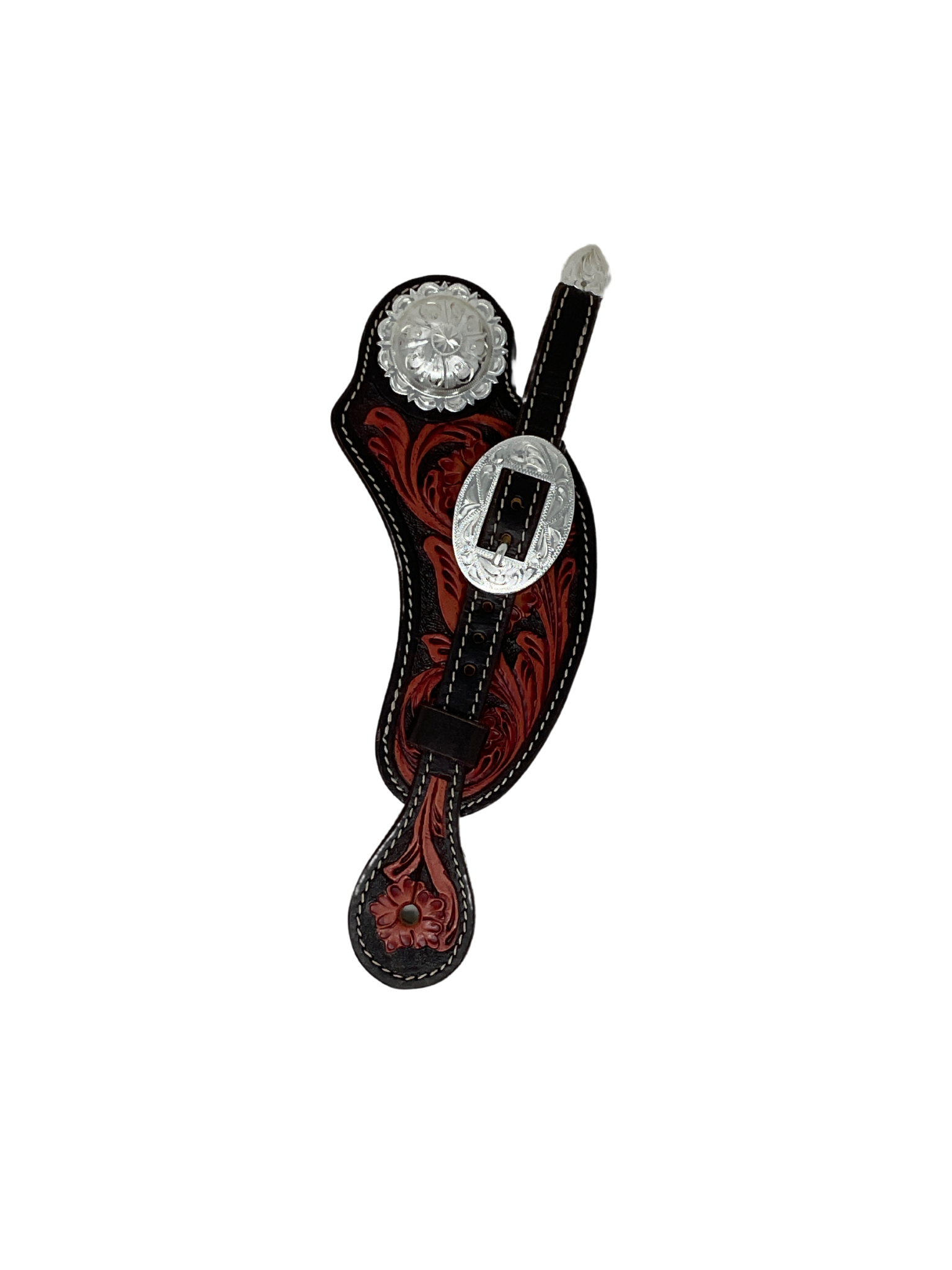Ladies Spur Straps with a silver plate concho mounted on each strap. Some also have buckle sets as well. Available in a variety of concho designs.