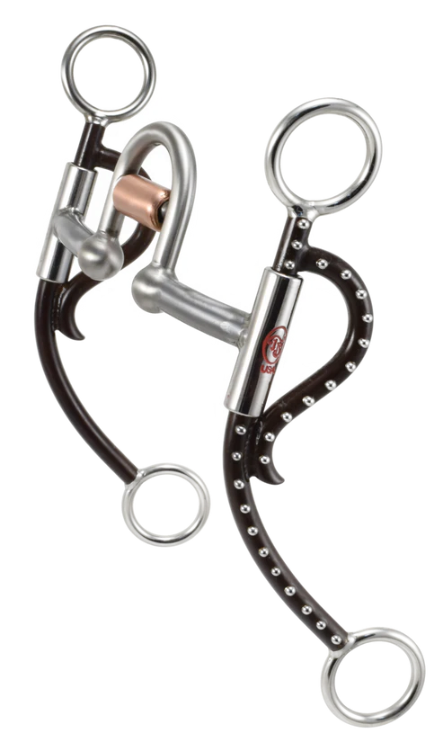 This beautifully crafted bit features a Longhorn© shank in the antique brown finish with stainless dots. The mouthpiece is our Silverado© with an added copper roller. This shank measures 8 " overall.