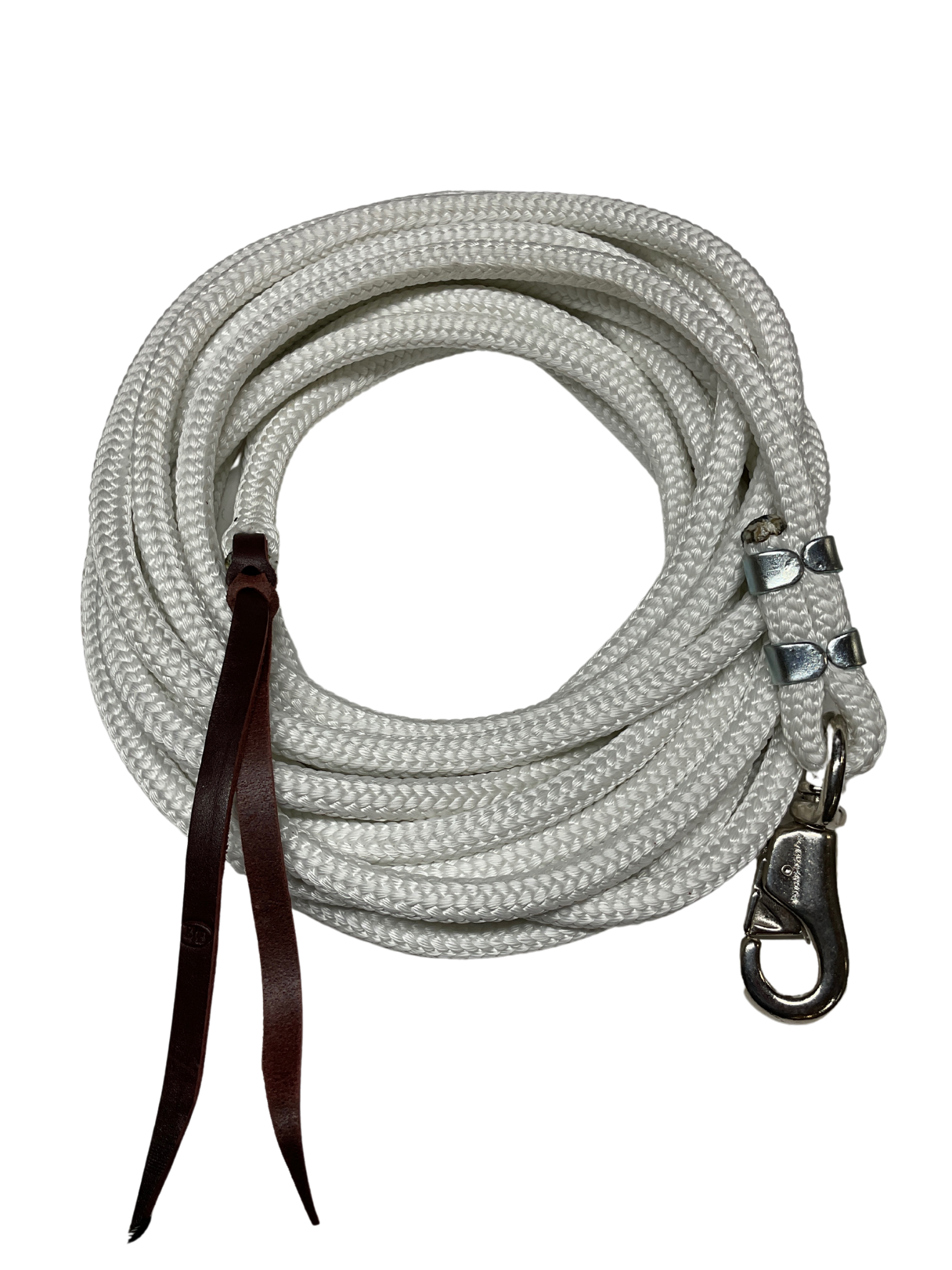 5/8" 30 foot Treeline nylon rope with leather popper and snap.