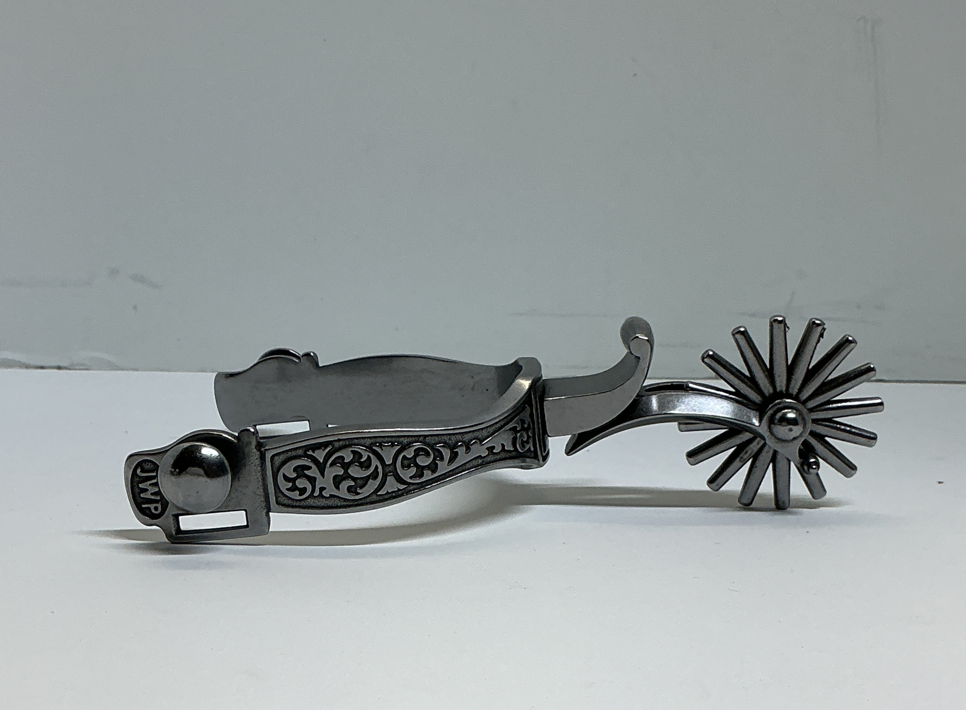 Old Time Spur Band pattern-OTB 80, designs reminiscent of those early days of the California vaquero. A time when buckaroos and ranchers wore spurs with strong floral and geometric design elements. A classic buckaroo spur made of steel that will rust over time, taking on that wonderful brown aged ranch patina.