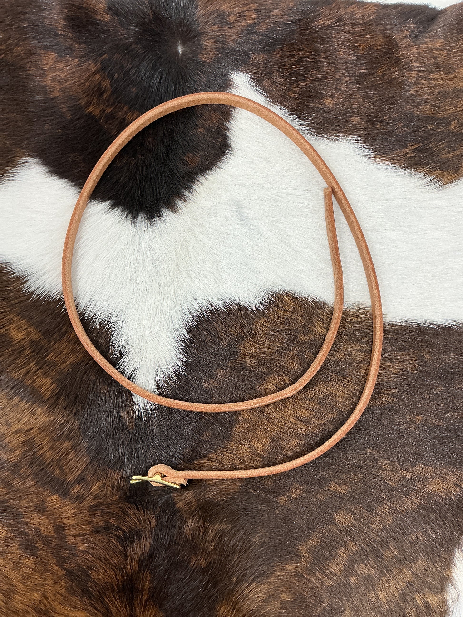 Replacement harness leather throat latch that measures 41" long and has brass hardware.