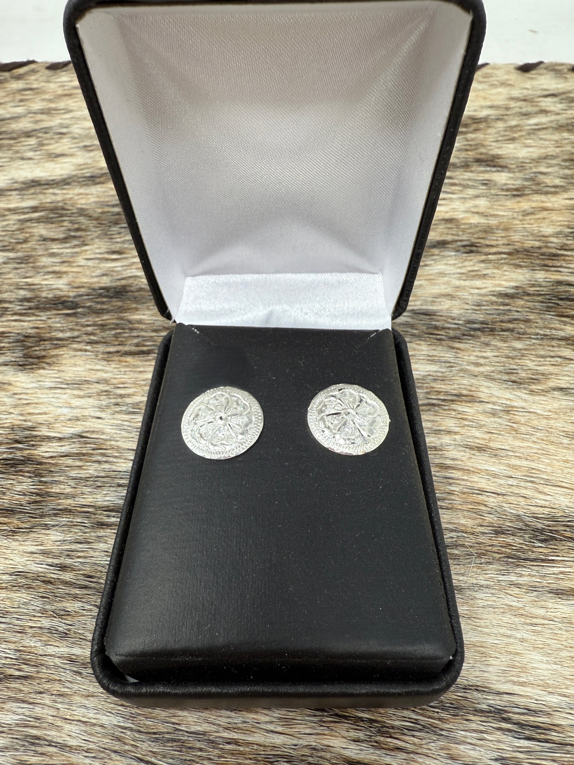 Custom sterling silver engraved round floral earrings available in 2 sizes