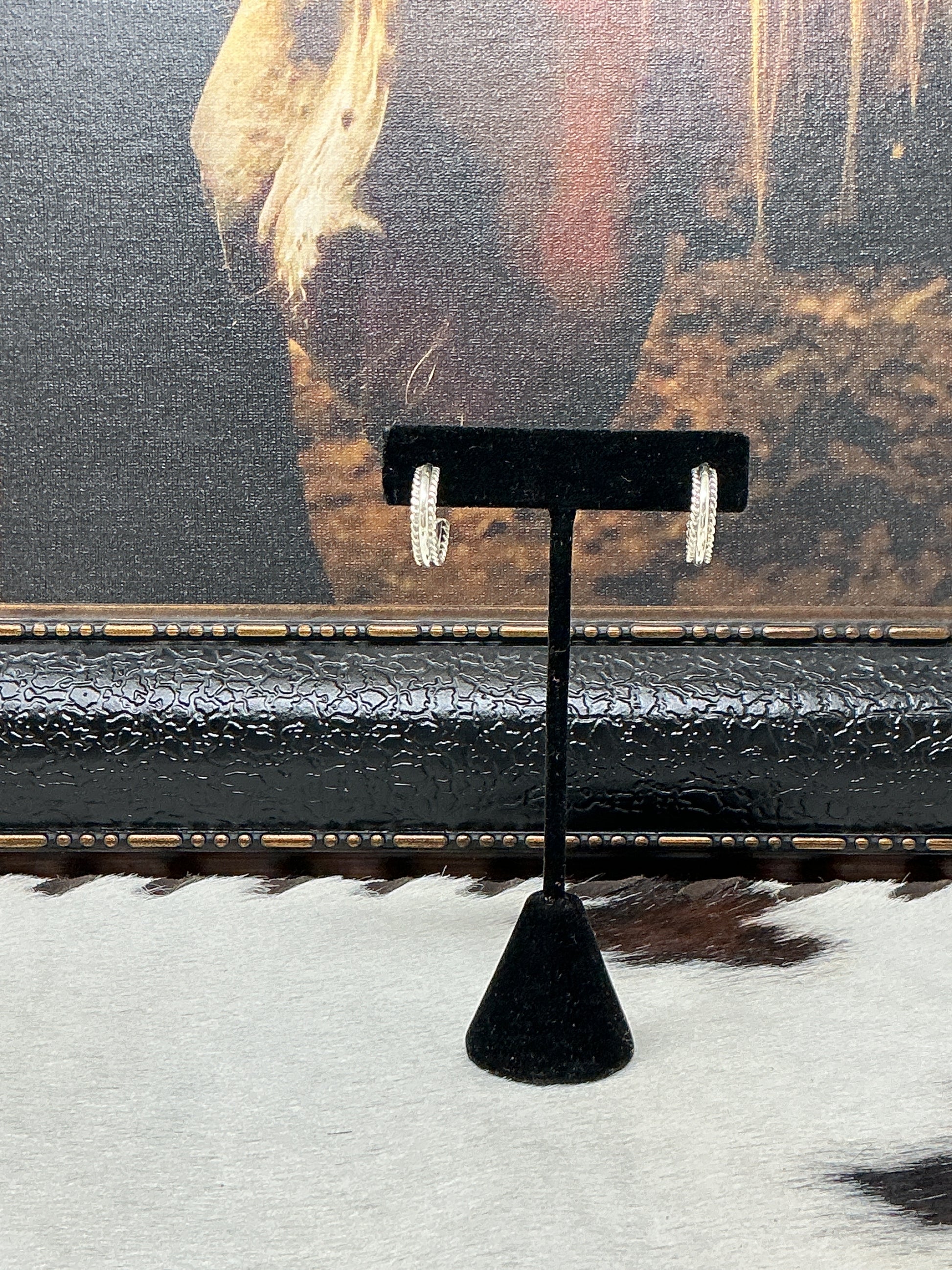 Handcrafted Navajo sterling silver hoop earrings featuring a classic 3/4" diameter design. These timeless pieces showcase authentic craftsmanship with a polished finish that catches light beautifully. Versatile enough for everyday wear or special occasions, sterling silver hoops are a wardrobe staple that pairs effortlessly with any outfit. Durable and hypoallergenic, they're an investment in quality jewelry that will last for years.
