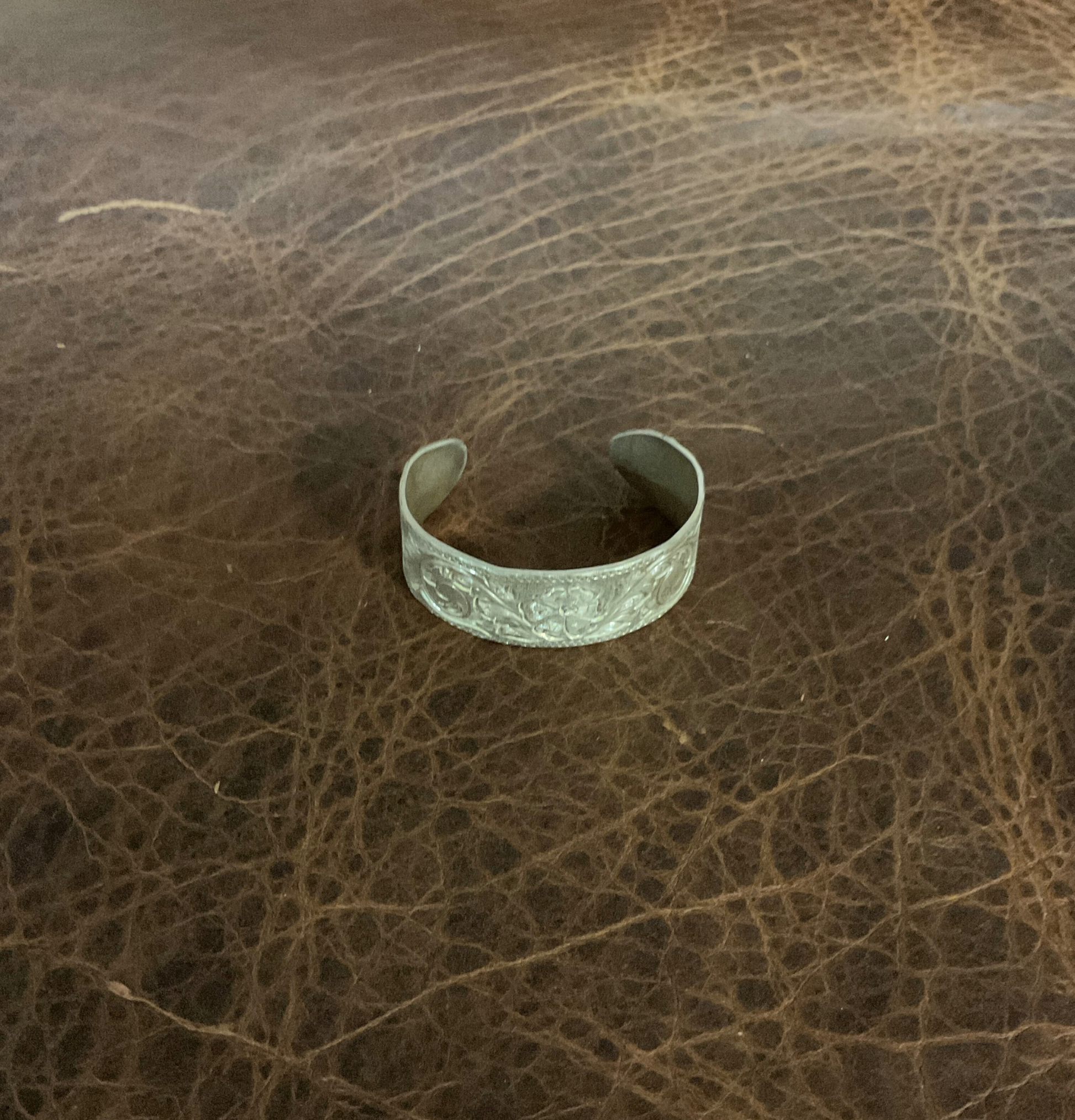 Discover the exquisite elegance of 'The Silver Baby' cuff, crafted from sterling silver with intricate engravings. This 5/8" wide cuff is designed for babies and features a 4" adjustable fit for ultimate comfort and style.