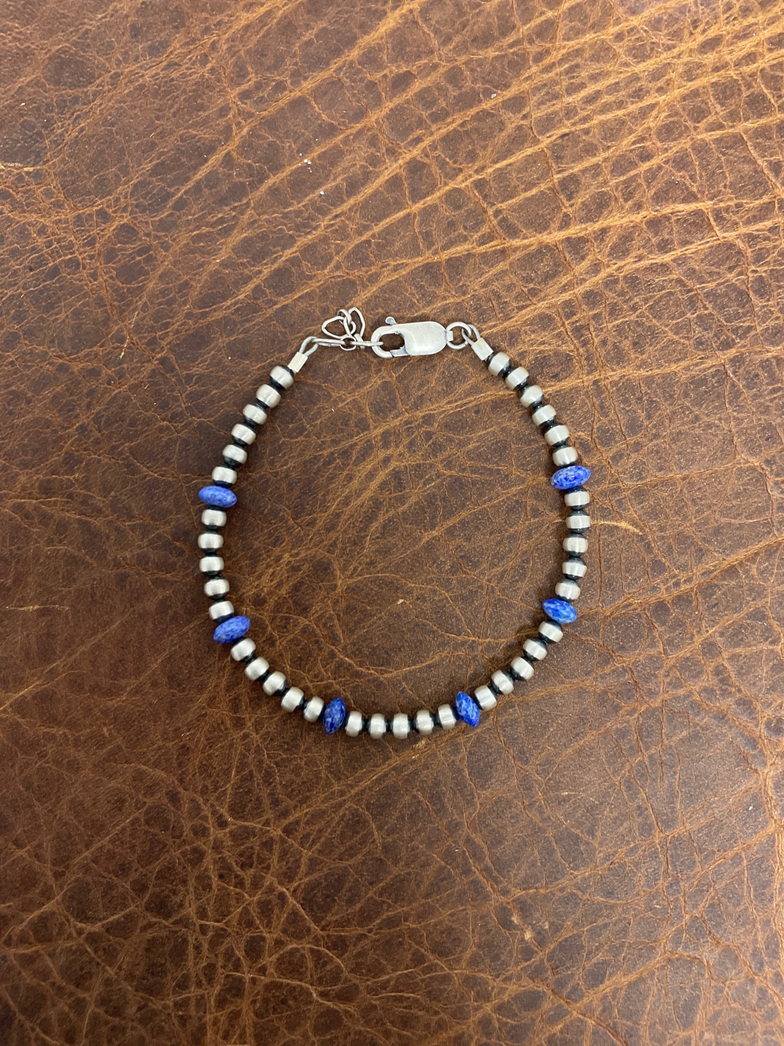 Introducing The Valerie bracelet, featuring exquisite Navajo pearls and stunning blue coral for a simple yet elegant look. Elevate your style effortlessly with this beautifully crafted piece. This bracelet measures between 7" and 8".