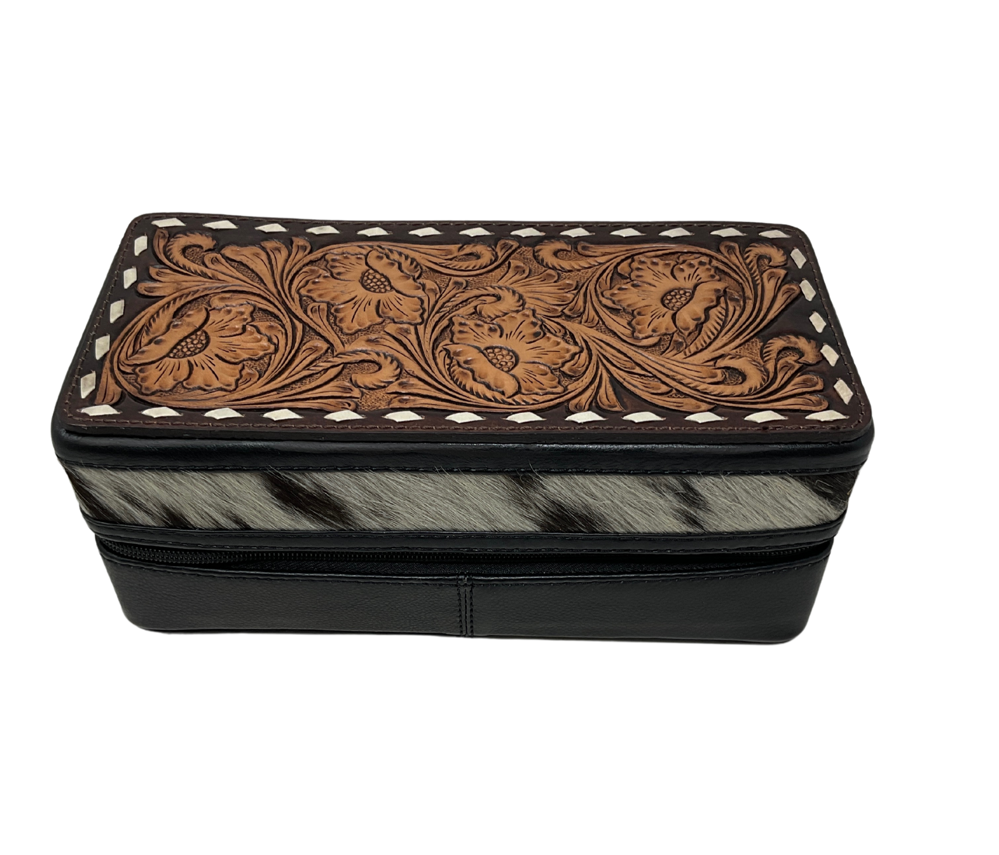 Tooled Leather w/Cowhide Rectangle Jewelry Case
