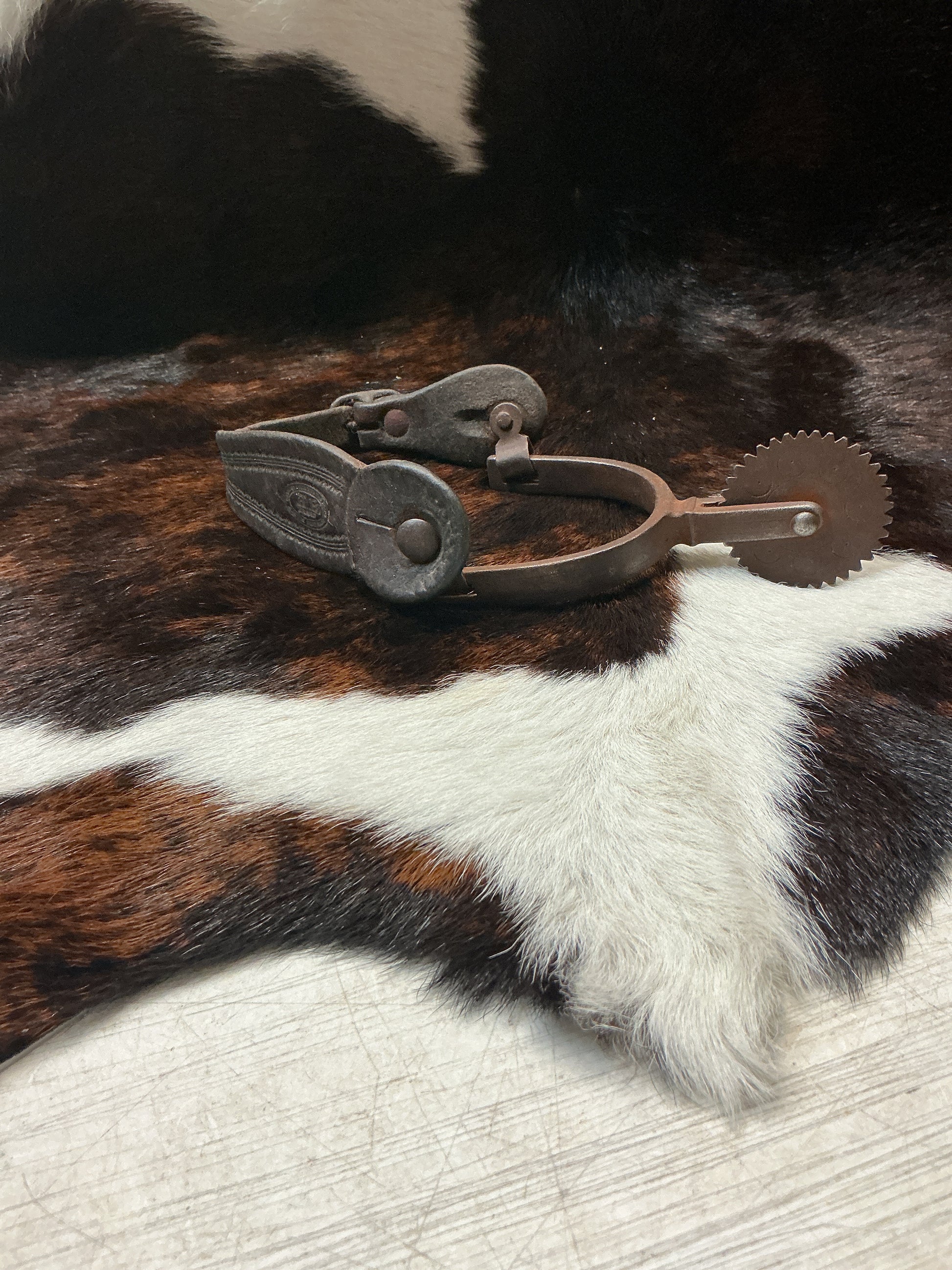 Early Buerman spurs with Harpham Bros. spur straps with 2" rowels.