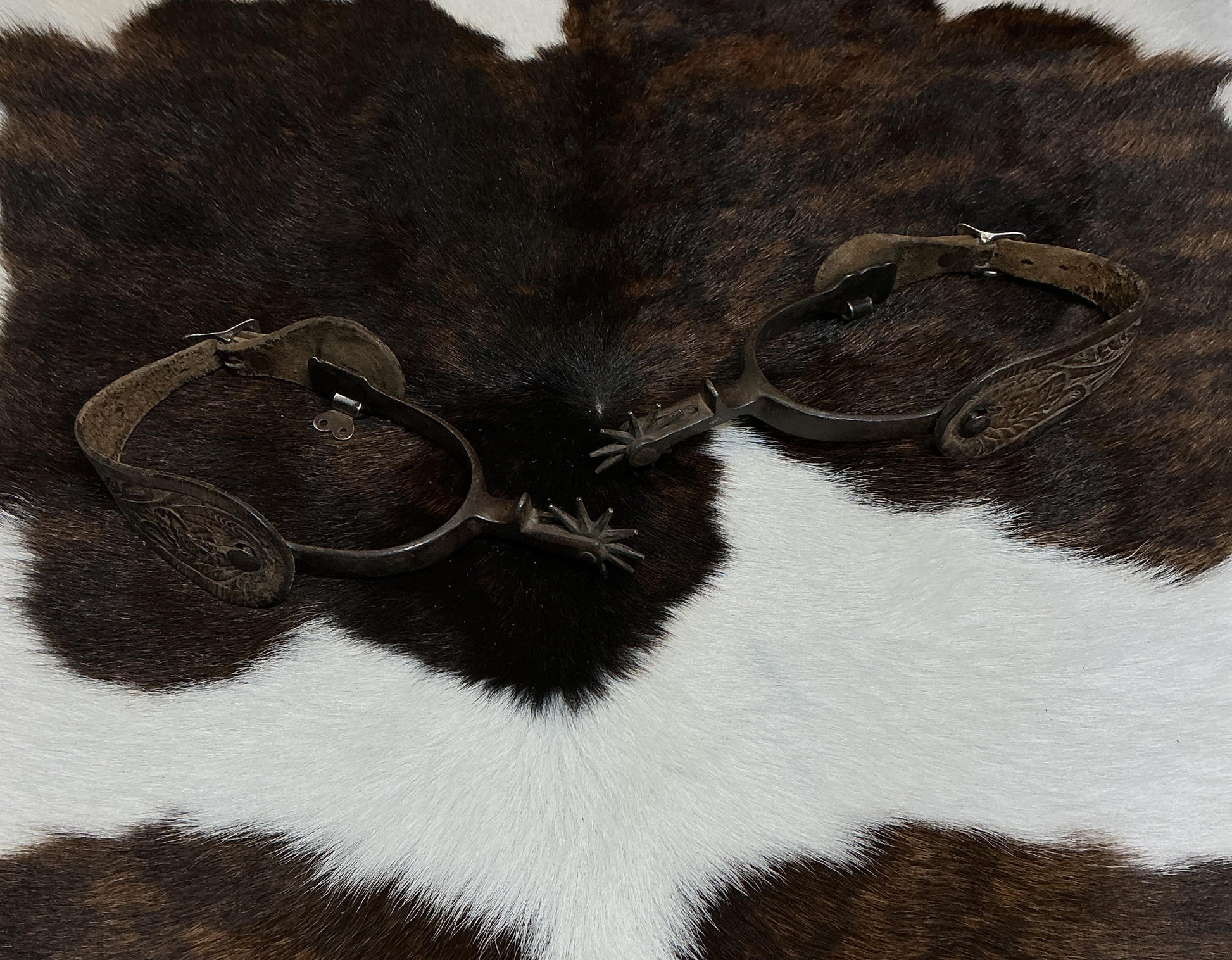 Early Buerman spurs & straps with 10 pt 1 3/4" rowels.