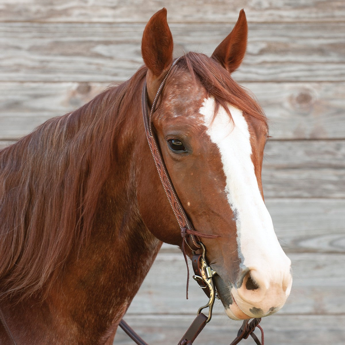 Natural skirting leather with weathered antiquing, Vine tool, cart buckle and bit ties