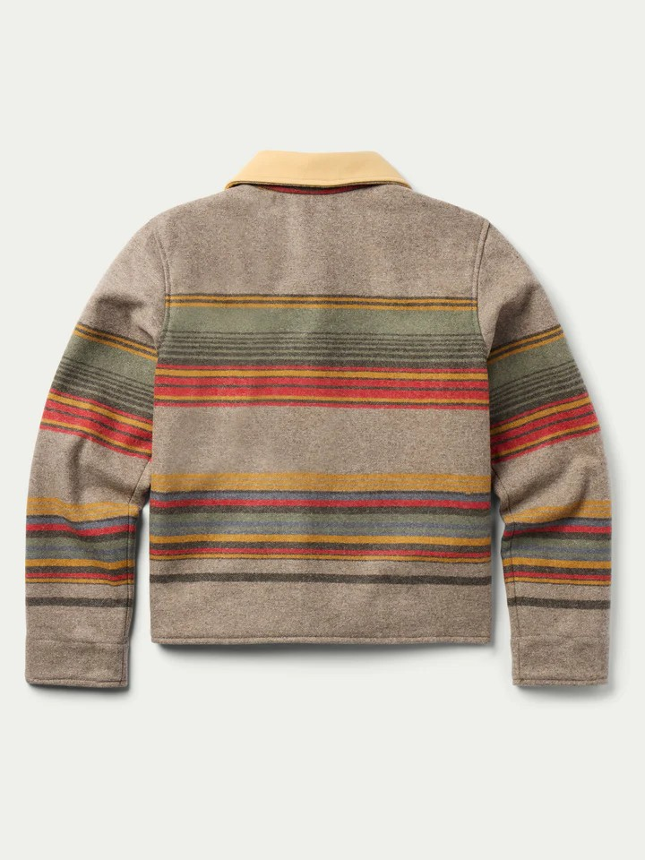 Inspired by vintage textiles of the southwest, the Women's Las Cruces Jacket is crafted from our signature 22oz Legacy Melton Wool and finished with a lamb suede collar. The center front closes with detailed antique silver concho buttons for a truly unique feel.